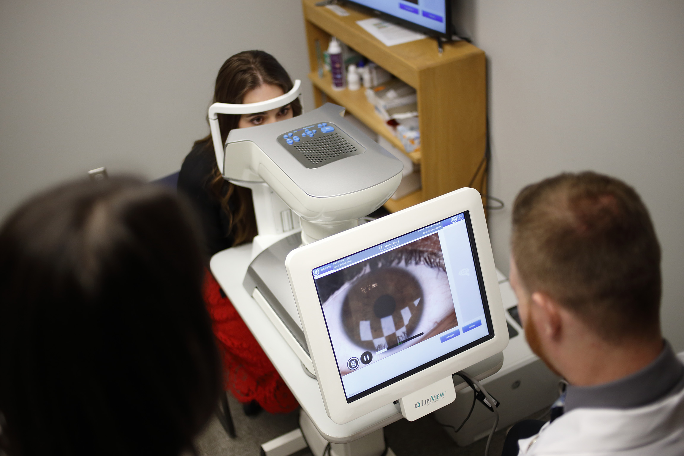Dry eye specialists at the IU Dry Eye Clinic use state-of-the-art technology and testing (Keratograph 5M, LipiView II, TearLab Osmolarity, InflammaDry) to diagnose and monitor your specific ocular surface condition. With these tools, our doctors can determine the underlying causes of your symptoms while also looking for signs of damage to the front surface of your eye from inflammation. Dry Eye Disease can result from the tears evaporating too quickly or from lack of tear film production or both. The most common cause of quick evaporation of the tears is from insufficient oil on the surface of the eye. The blockage of the oil producing (meibomian) glands causes the tears to evaporate quickly and can be treated in-office with LipiFlow, MiBoFlo, iLUX (new!), and Intense Pulsed Light Therapy (new!), sometimes in combination with at-home treatments. Other treatments for dry eye may include prescription eye drops to reduce inflammation and improve tear production (Restasis and Xiidra), blocking the tear ducts (punctal plugs) to increase tear volume, and specialty contact lenses that can keep the eyes lubricated.